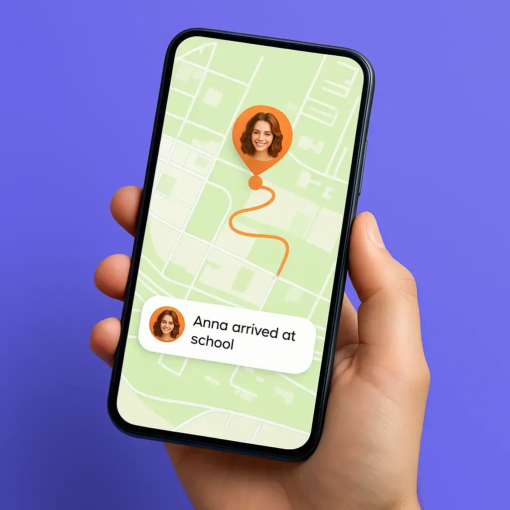 Open the app and instantly see where your child is. Our real-time GPS feature updates their location live: whether they’re at school, at practice, just walking home, or have arrived at school safely. Works across both iOS and Android devices.