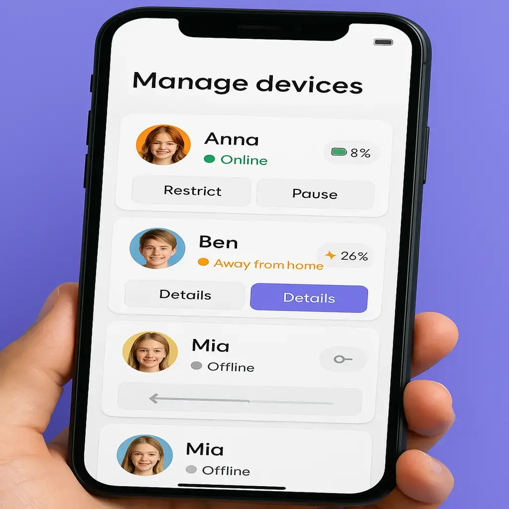 Have more than one child? No need to switch apps. Track and manage all your kids’ phones from a single parent account. Create individual profiles, set custom rules, and monitor each child separately.